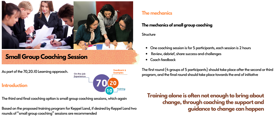 Everyone agrees that coaching / mentoring has the ability to change people more than training alone.